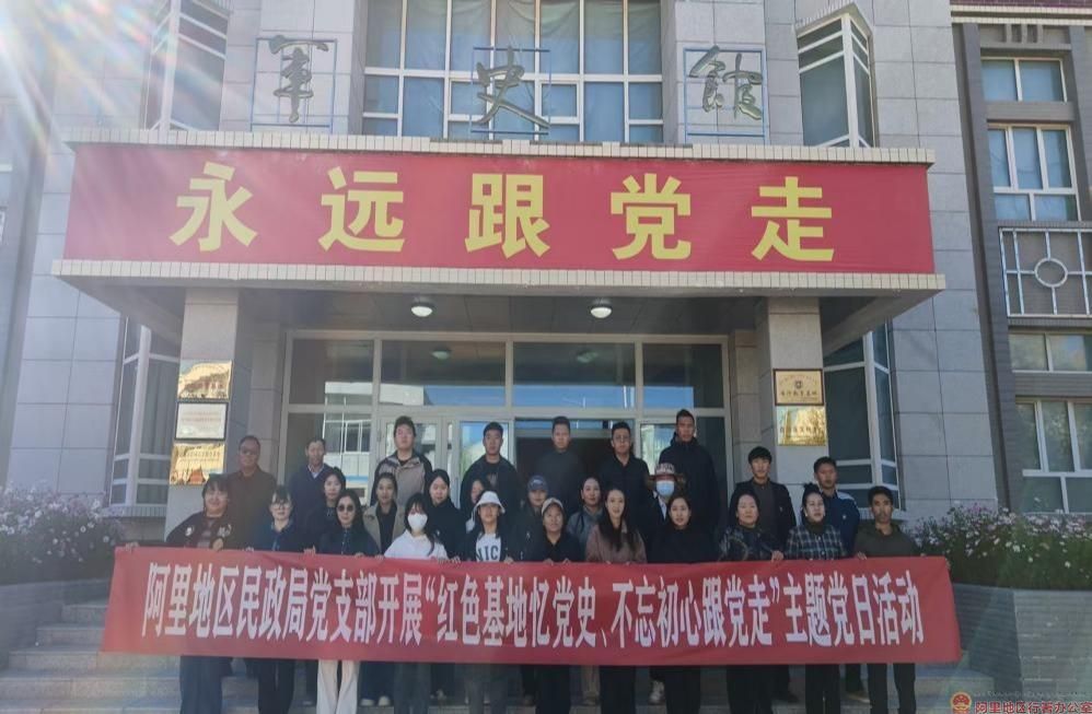 为深入学习贯彻习近平新时代中国特色社会主义思想,全面学习党的百年奋斗史,切实提高党员干部政治站位,激励引导党员干部弘扬爱国主义精神,不忘初心、牢记使命,履职奉献,阿里地区民政局党支部于9月25日组织全体干部职工前往西藏阿里地区军分区军史馆开展“红色基地忆党史、不忘初心跟党走”主题党日活动。干部职工先后参观了先遣连英雄事迹展、军分区军史展和军分区建设发展历程,讲解员从毛主席做出的伟大指示“进军西藏,...